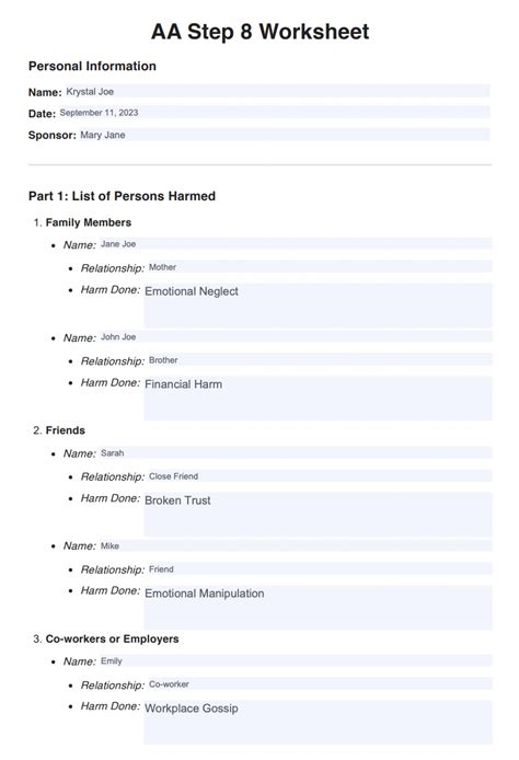 Worksheets Are Step Made A List Of All Persons We Had Harmed And, 8Th Step Work, 8Th Step Work, Proposed List Of Type Of Harm.